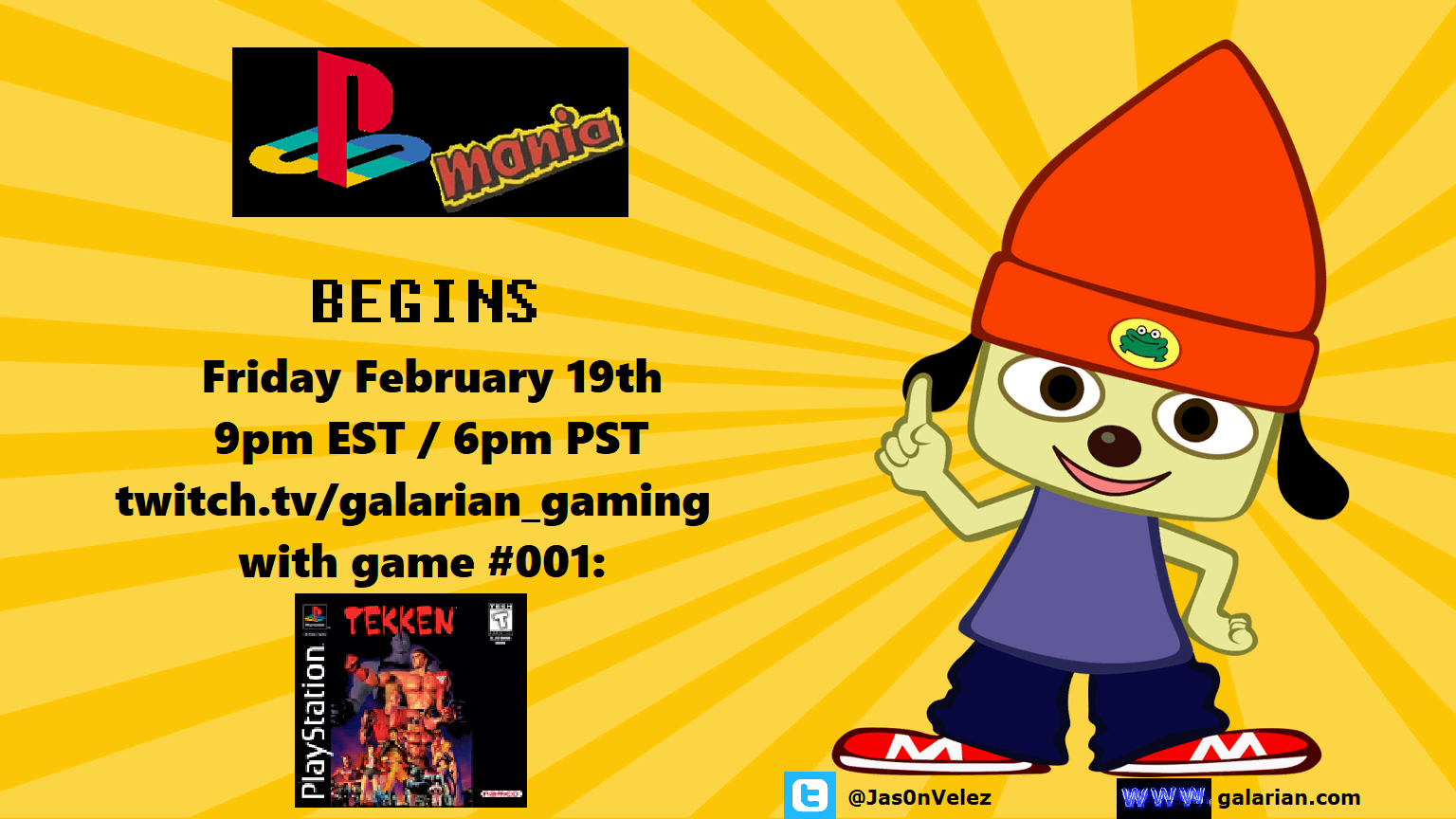 See you Friday, February 19th at 9pm EST at https://www.twitch.tv/galarian_gaming for the debut of PSX Mania!